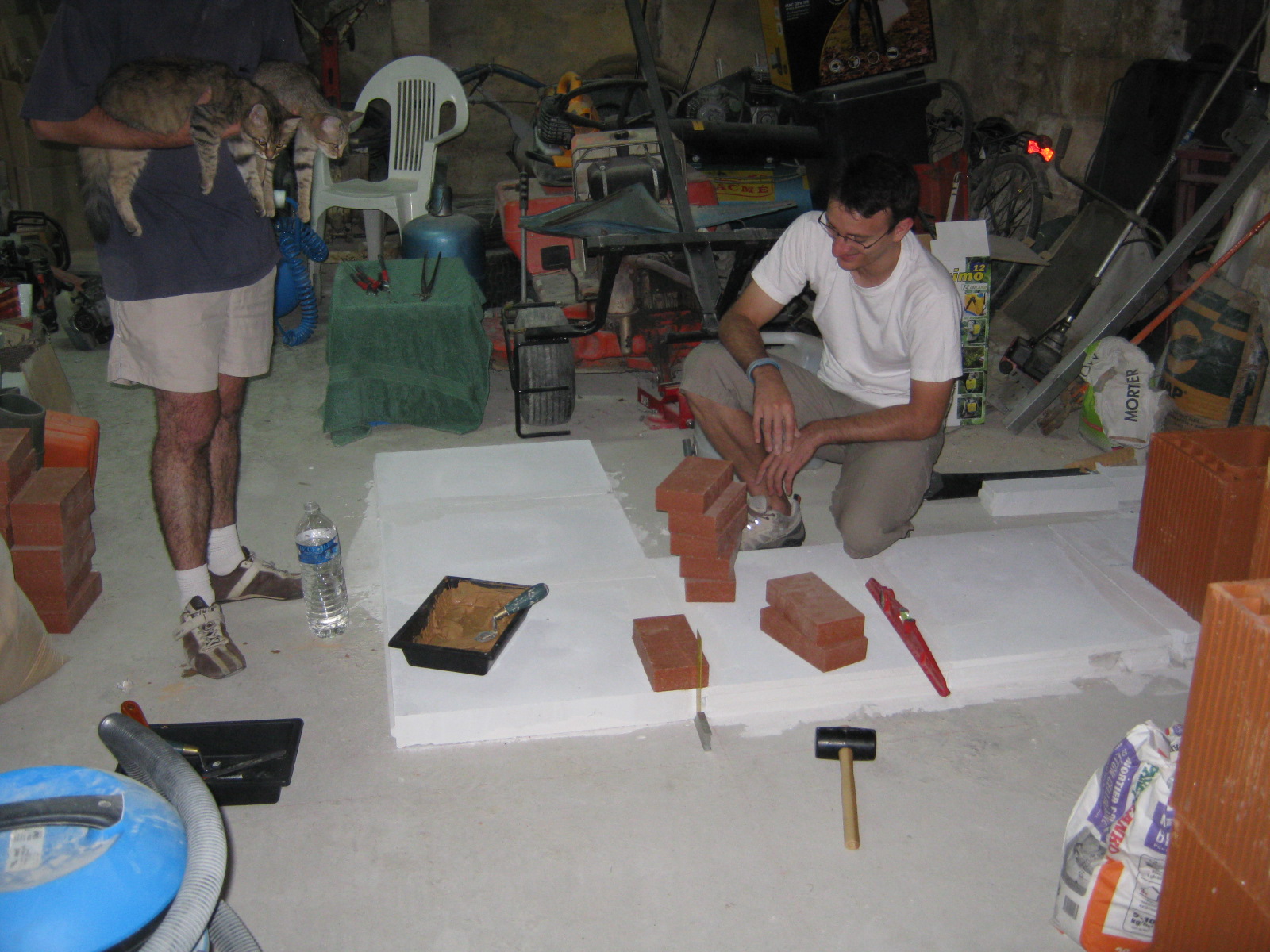 la construction du poêle de masse (PDM pour les intimes) à donc commencé ce week-end grâce a Mickaël et Xavier M, un début un peu difficile mais d'une grande qualité.
